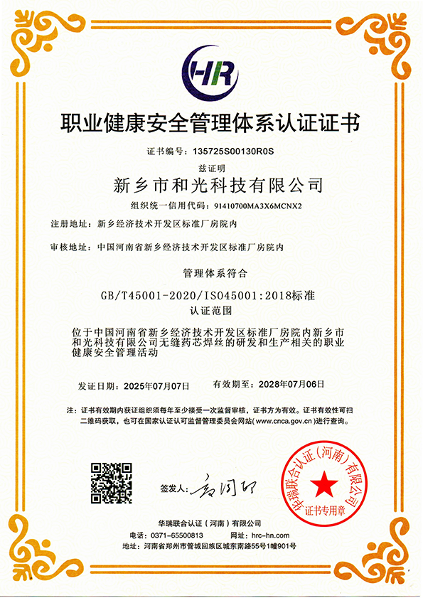 In late June 2025, the audit team from Huarui United Certification (Henan) Co., Ltd. conducted a recertification audit of the company's ISO 9001, ISO 14001, and ISO 45001 management systems.